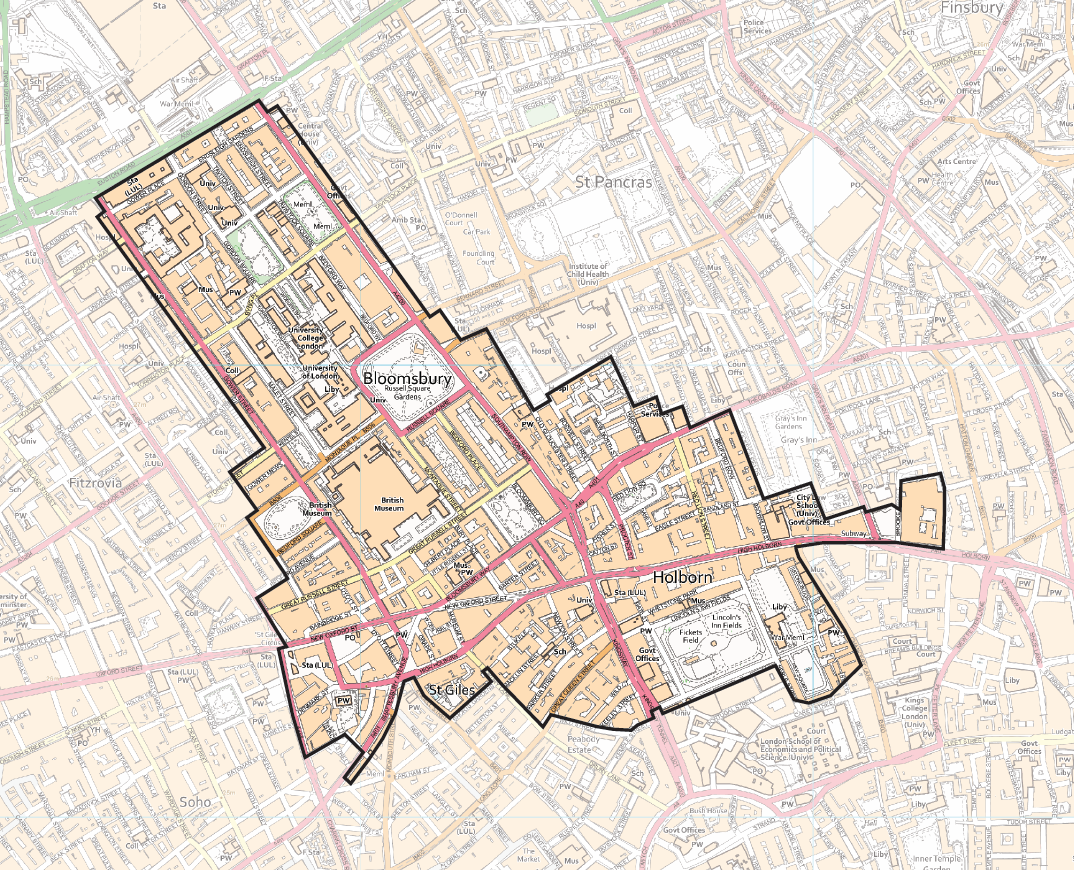 The proposed CDA Property Owner BID (PBID) will cover the same area as the Camden side of the existing Occupier BID; including its northern and southern extensions, across Holborn, St Giles and Bloomsbury. This alignment ensures a consistent approach across both BIDs for planning, investment and service delivery.